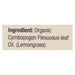ingredients : organic cymbopogon flexuosus leaf oil;lemongrass