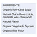 ingredients : organic raw cane sugar natural chicle base;chicle;candelilla wax;citrus acid;natural flavor organic vegetable glycerin organic rice flour